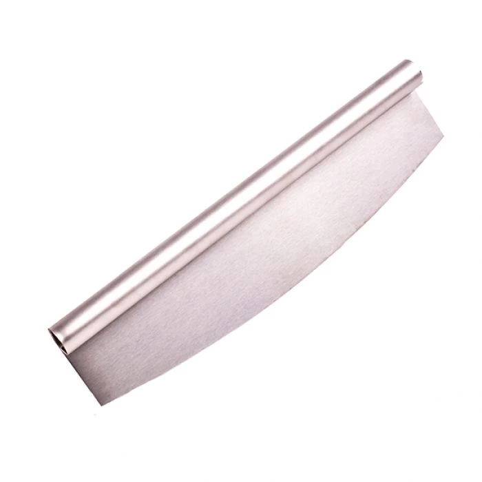 Designed for balance and grip in heavy 18/8 stainless steel, the slightly curved 35cm long blade pivots to chop, dice and cut through vegetables, hard cheese or herbs quickly and efficiently.