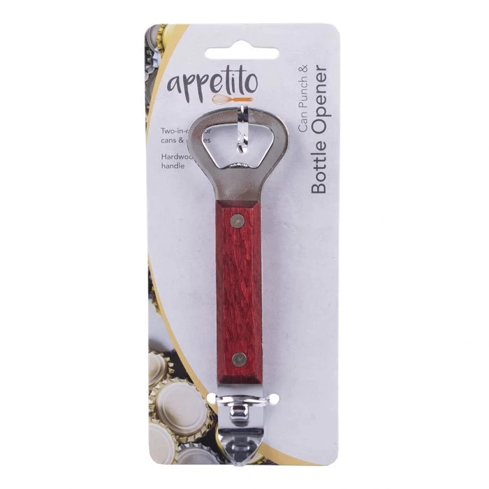 Crack open your favourite cold drink with ease, with the help of the Appetito Can Punch & Bottle Opener. This heavy duty, two-in-one opener features a hardwood handle. It’s the perfect addition to your home bar, kitchen or even camping kit.