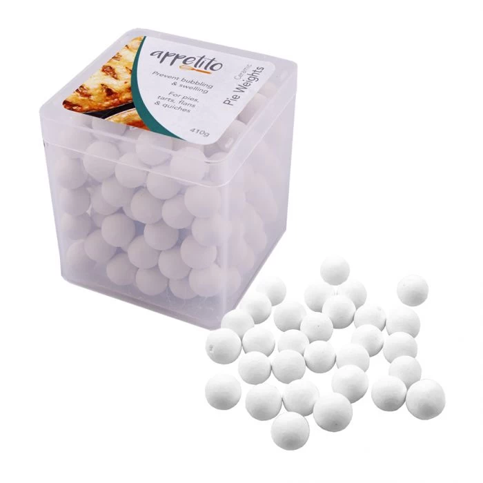 Place the rolled dough into the pie dish. Place parchment or waxed baking paper over the dough. Spread the pie weights evenly over the paper. Bake until cooked (as per recipe instructions). Lift the paper with the pie weights out of the dish and store for future use.