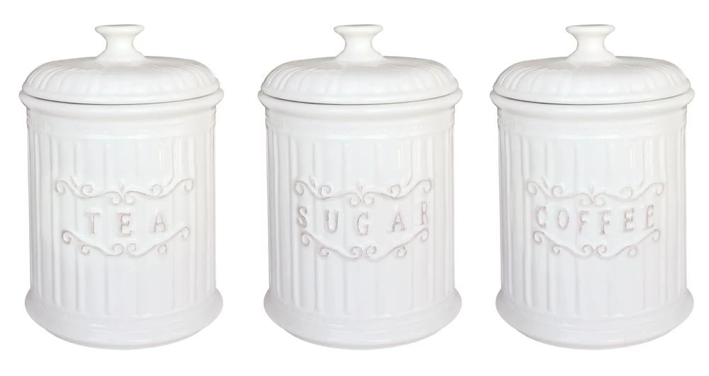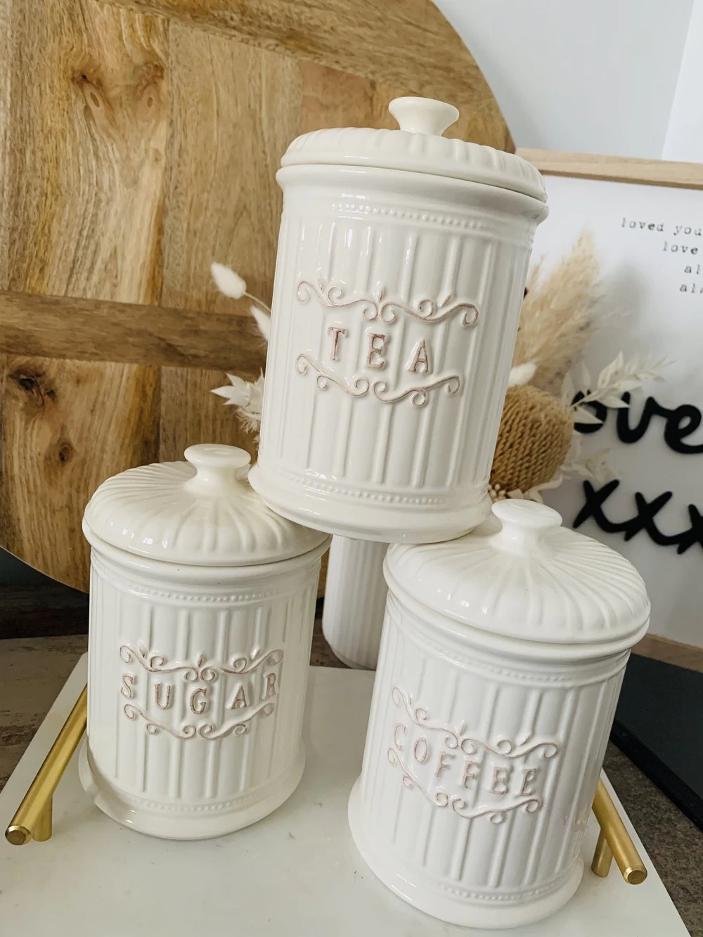 Who else is in love with farmhouse style kitchen’s? Well if you are these gorgeous canisters will fit right in with your kitchen interior. For storing the essentials sugar, tea and coffee these set of three canisters will look the part on your counter tops.Â