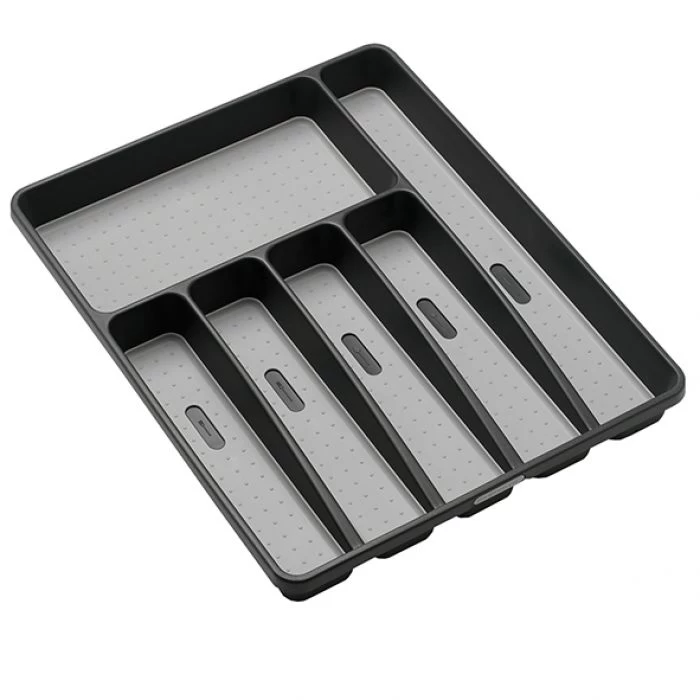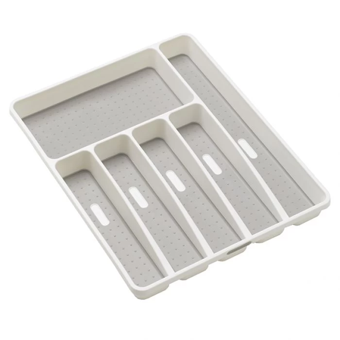 The Madesmart 6 Compartment Cutlery Tray fits most kitchen drawers to help with cutlery and utensil organisation. The rounded corners and soft-grip lining make this cutlery tray highly functional, easy-to-clean, and aesthetically pleasing. This tray features non-slip feet and soft-grip lining to ensure items stay in their place. Made from high-quality, BPA-free plastic for long-lasting organisation.