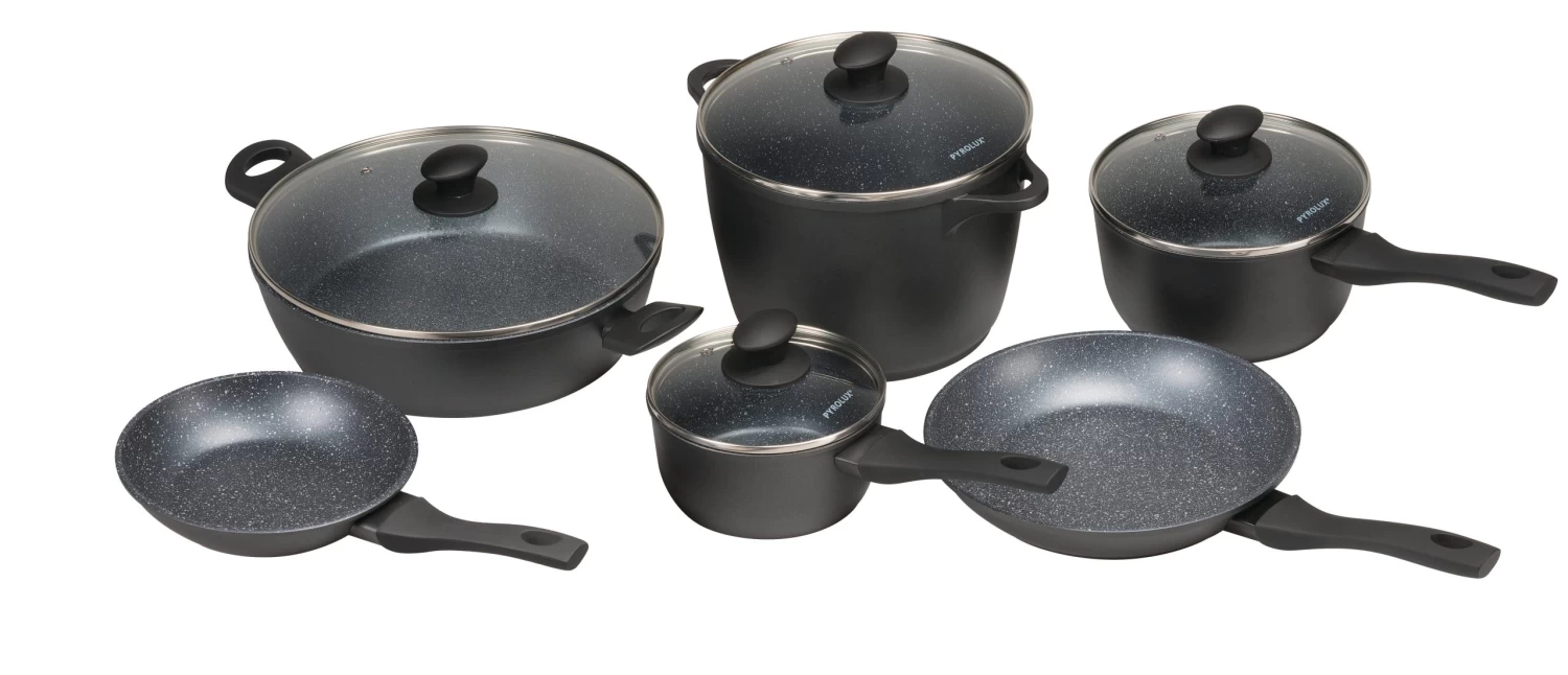 Pyrostone is made for use on all cooktops including induction. With crystal clear tempered glass lids (if applicable), the entire set is oven safe to 180 degree Celsius and the 3 layers of PFOA-free, non-stick granite style coating is super resistant to scratching